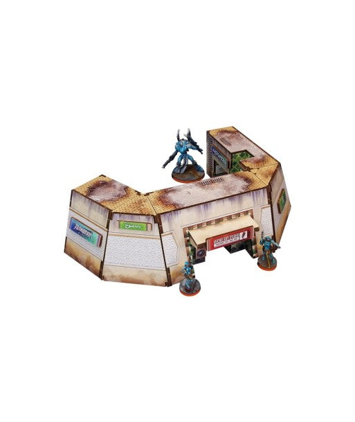 The Al Medinat Walls (5) PREPAINTED is a set of five wall sections or buildings, dedicated for Infinity the Game by Corvus Belli.