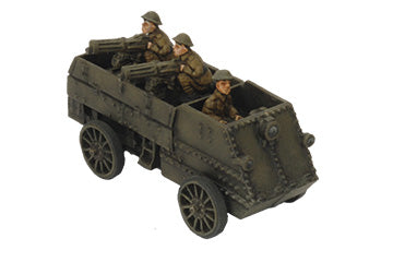 Major Raymond Brutinel, a successful French businessman who had immigrated to Canada before the outbreak of the war, organised and raised a mobile machine-gun unit with private funds. He organised armoured trucks to be built by the American Auto Car company. Each Autocar had an open-topped armoured box with an angled front plate and drop sides. The machine guns were pedestal-mounted and capable of firing over the sides of the vehicle. The machine-guns could also be dismounted for ground use.