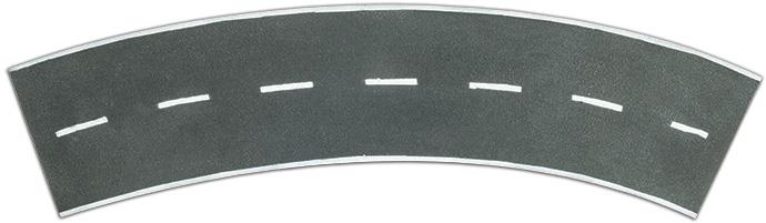 Includes four pre-painted straight 12”/30cm road sections, two pre-painted curved 12”/30cm road sections.