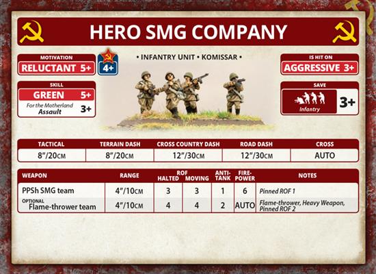 Contains a plastic Storm Group (with 7x PPSh SMG teams and weapons teams). Or can be used to build a Hero SMG Company or Scout Platoon