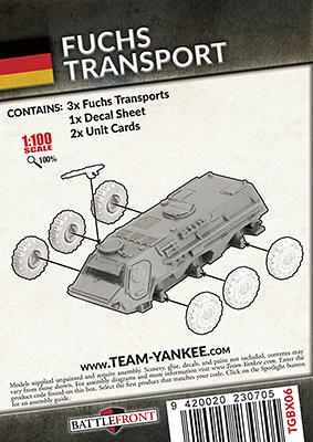 Contains 3 Fuchs APCs, resin crew sprue, units cards and decal sheet