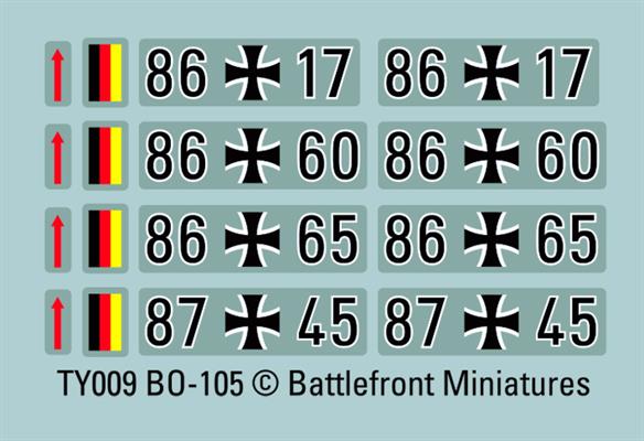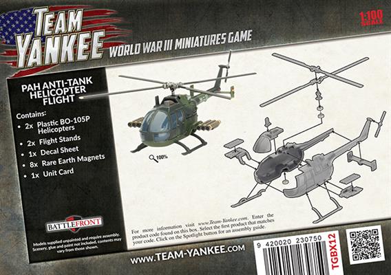 Includes two plastic BO-105 PAH anti-tank helicopters, two plastic flight stands, decal sheet, eight rare-earth magnets & Unit Card.