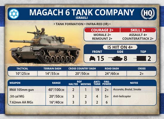 Contains: 5x Plastic Magach 6 Tanks, 5x Tank Commanders, 1x Decal Sheet, 4x Unit Cards