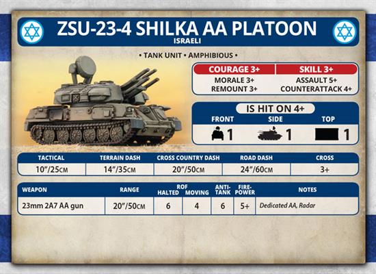 Contains: 2x ZSU-23-4 Shilka Anti-Aircraft Tanks, 1x Unit Card