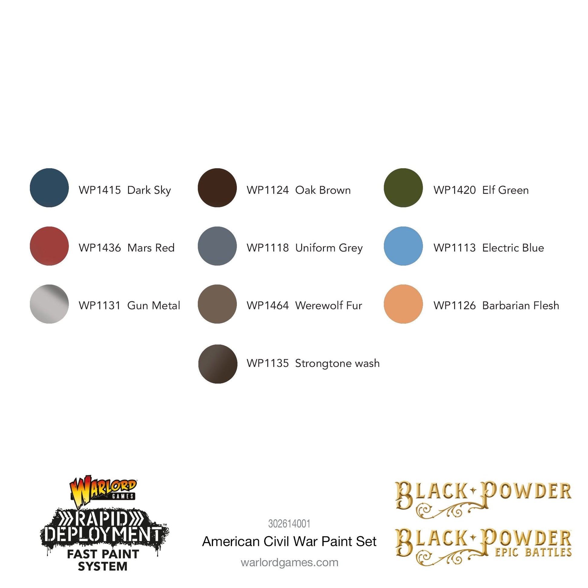 Containing 9 high pigment paints, a wash and a frame of our Epic Battles ACW infantry to either sneakily outnumber your enemy, or practise your painting on.