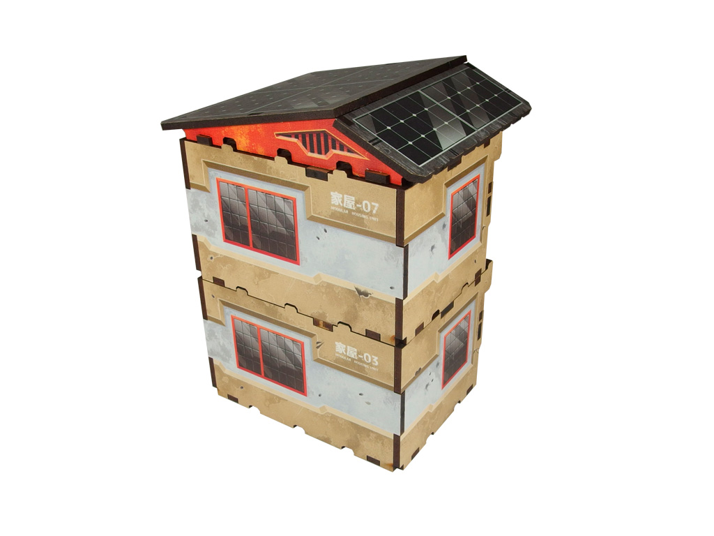 The Kokkyo-3 Quarters PREPAINTED set consists of 2 buildings, which can be combined in various positions. What's more, multiple Kokkyo-3 Quarters and Market buildings can be stacked together! The set is dedicated for Infinity the Game by Corvus Belli.