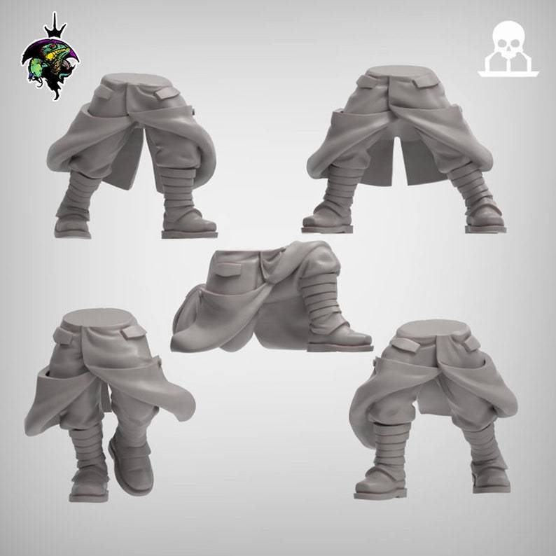 This set includes 5 different sets of legs. They are compatible with most 28mm heroic scale miniatures.