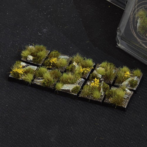 Highland bases have rocky soils and a more or less dense plant cover with high herbs and small shrubs, exhibiting a wide range of greens, splashed here and there with beautiful yellow flowers. Best used to simulate with realism a vast range of shrublands, typical of mountain slopes dry habitats - heaths, garrigues, chaparral and maquis - most common in Mediterranean climates.
