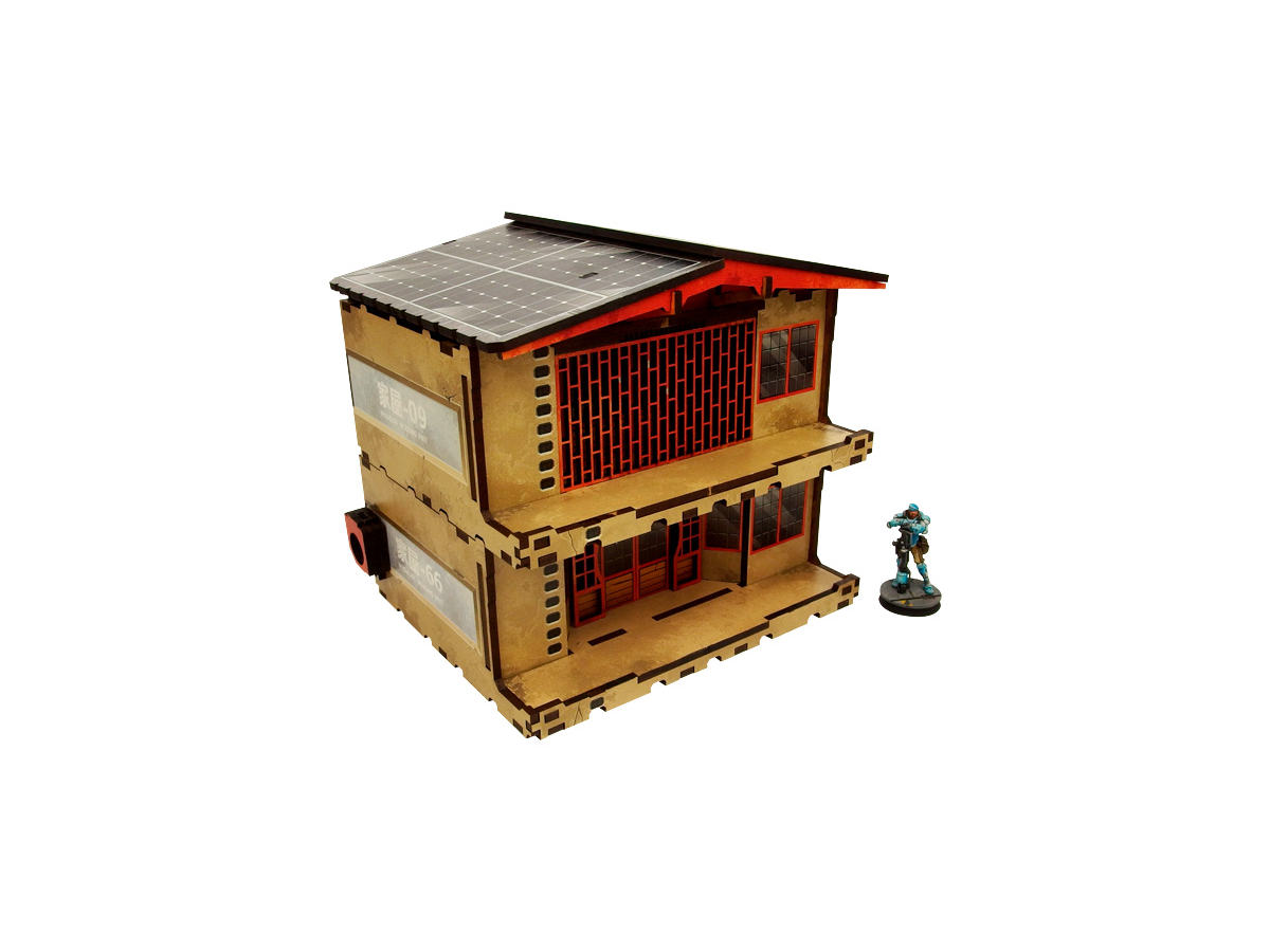 The Kokkyo-3 Market PREPAINTED set consists of 2 buildings, which can be combined in various positions. What's more, multiple Kokkyo-3 Market and Quarters buildings can be stacked together! The set is dedicated for Infinity the Game by Corvus Belli.