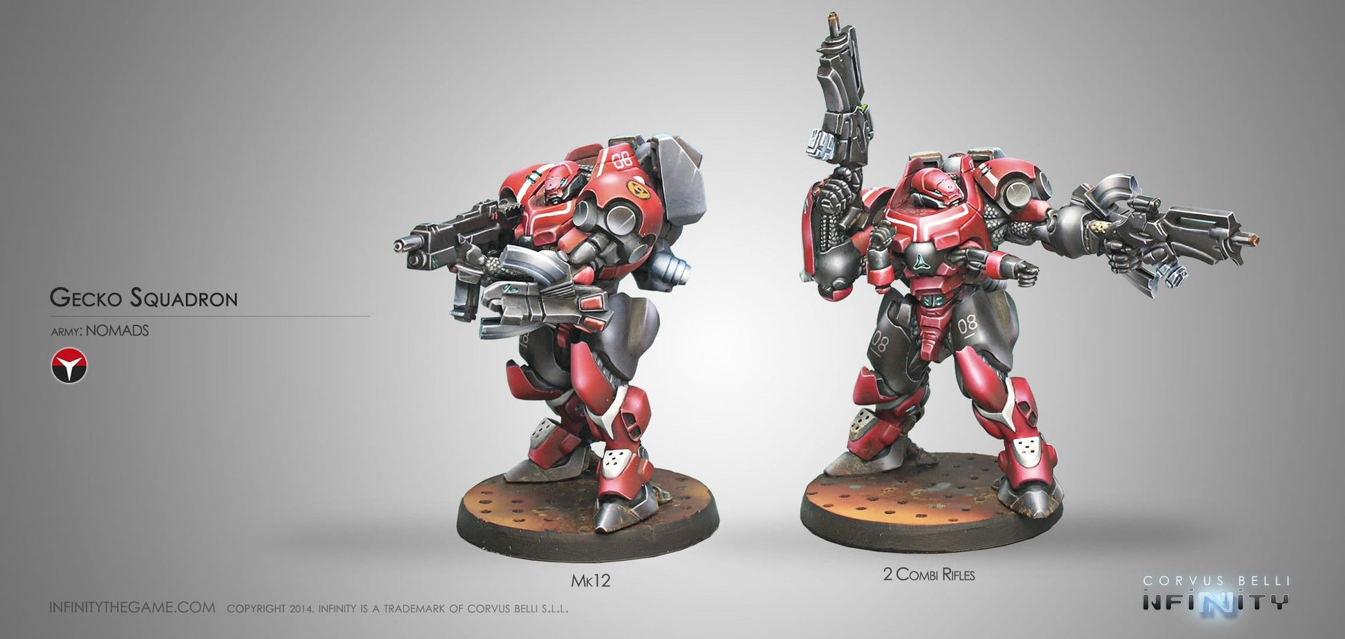 You have seen it in Infinity Art book One, but now it is real! A new T.A.G. for the Nomads! And in a two-pack box! The Geckos are the spearhead of the Nomad boarding forces, running ahead to secure narrow corridors and passageways where their compact size and versatile weaponry makes them the alpha males, the toughest of Corregidor's assault teams.