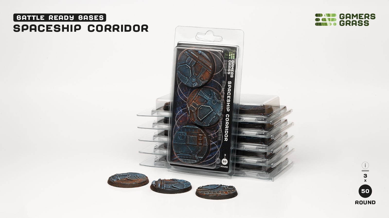 Rusty metal floors, exposed wiring, and broken equipment scattered around. Each base is carefully crafted to transport your miniatures to a sci-fi industrial world, challenging them to explore the hastily abandoned corridors of an old derelict spacecraft.