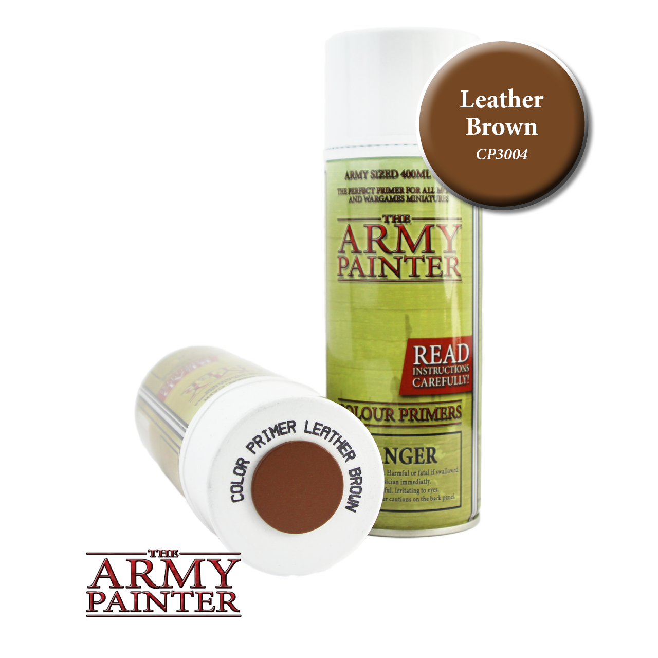 Leather Brown: This spray is ideal for wood (warmachines and Chariots), leather and brown skin. Also use for great effect on horses, wolves, Beastmen and Minontaurs for instance.