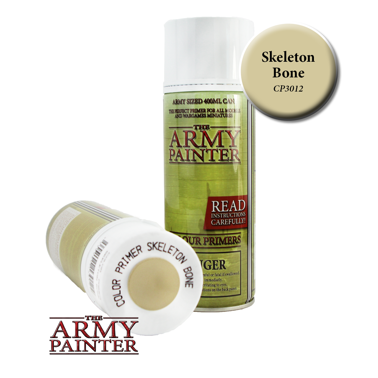 Skeleton Bone: As the name suggests, this Colour Primer has been designed to look exactly like Bleached Bone making it an absolute must for armies of shambling dead. This spray is increasingly popular for British WWII desert uniforms/vehicles as a lighter alternative to Desert Yellow.