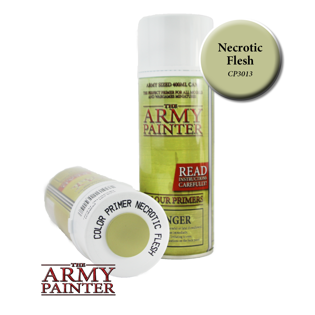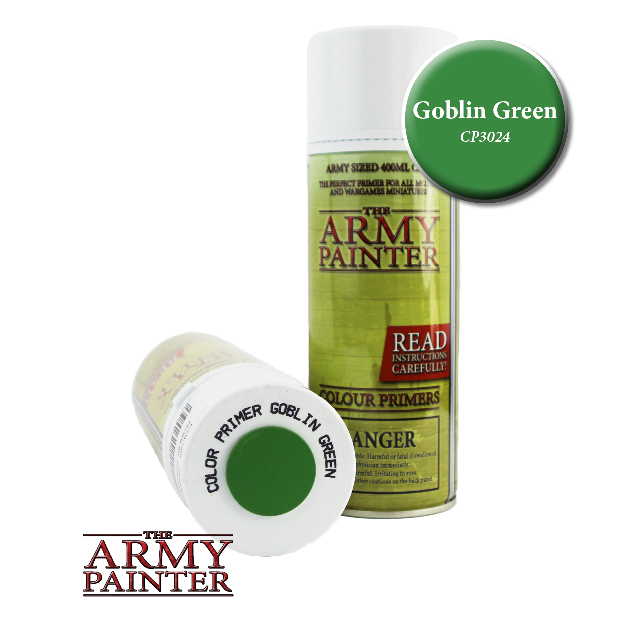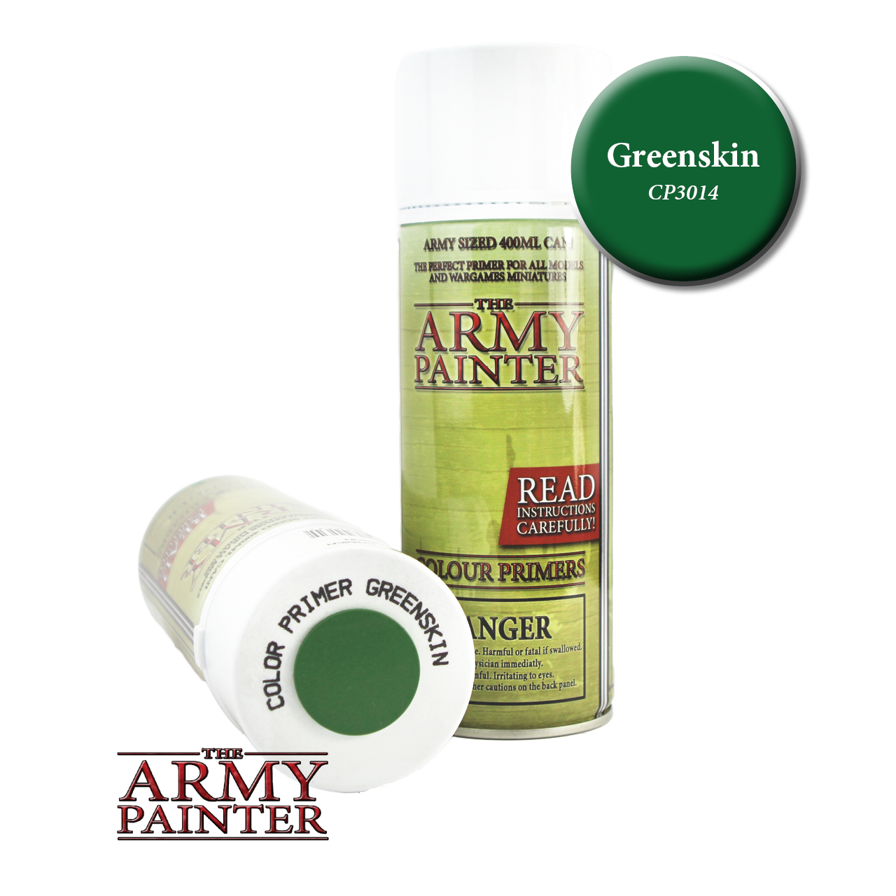 Greenskin: The name says it all... The perfect primer for all Orcs and Goblin armies. A strong green colour also useful for army projects like Wood Elves or those Space Marine Salemanders.