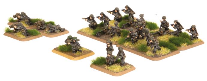 Contains 1 G3 Rifle team, 4 MG3 teams with Panzerfaust 44 anti-tank rockets, 3 Milan missile teams, 1 Carl Gustav team and 8 Unit Cards