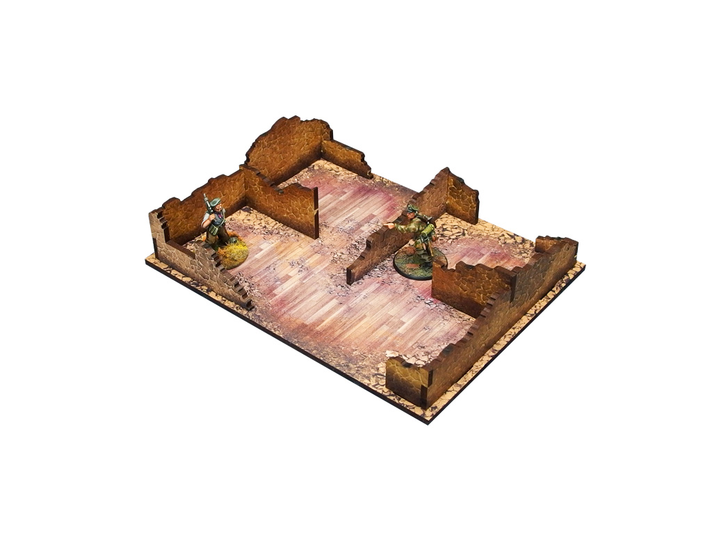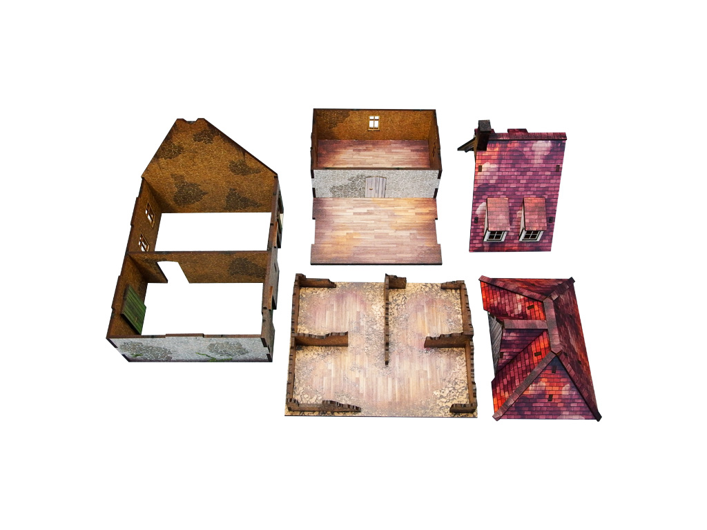 Multicolor prepainted (UV-printed) 2-level WW2 Normandy Farmhouse building with accessible colorful interiors, removable levels and removable ruined ground floor. Room to fit in the whole infantry squad inside. Pre-cut acrylic transparent window panes included. Option to assemble with open or closed shutters and doors.