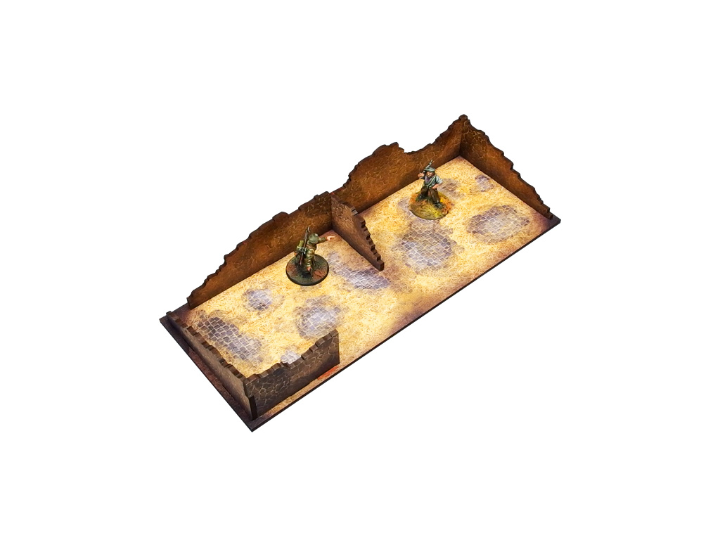 A set of 2 multicolor prepainted (UV-printed) WW2 Normandy Stable w. Dovecote buildings with accessible colorful interior, removable roof and ruined ground floor of the main building. Room to fit in the whole infantry squad inside. Pre-cut acrylic transparent window panes included. Option to assemble with open or closed doors.