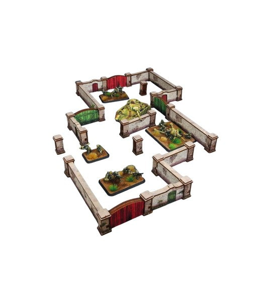 A set of multicolor prepainted (UV-printed) WW2 Normandy stone walls with large and small gates. Optional color gates included.