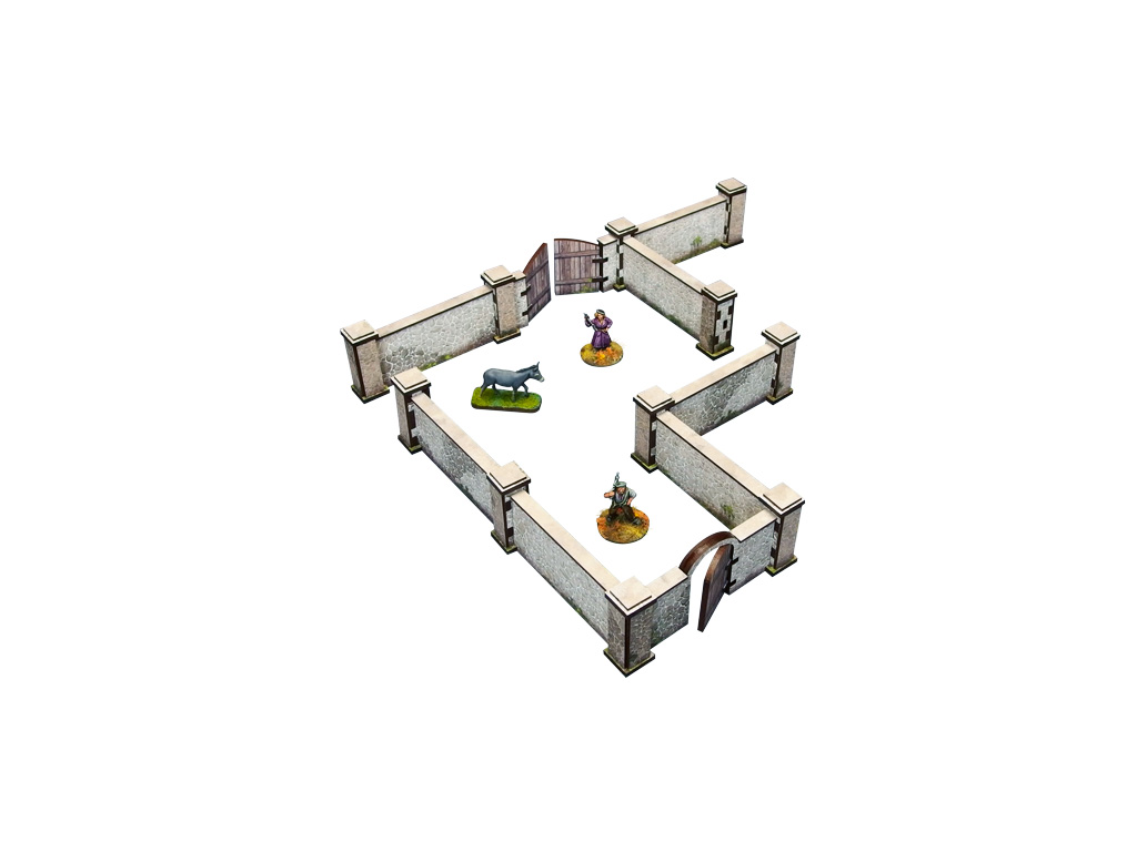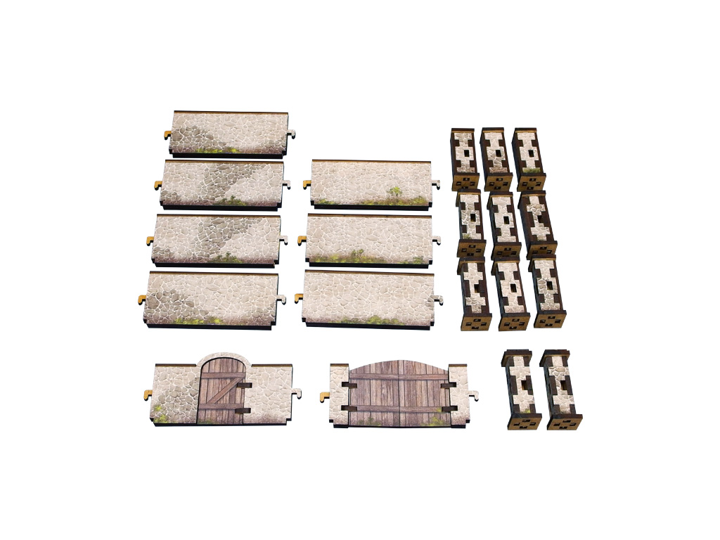 Multicolor prepainted (UV-printed) modular WW2 Normandy high Stone Wall with Gate terrain. The gate can be opened or closed during play. Infantry full cover and vehicle hard cover, a perfect defensive position.