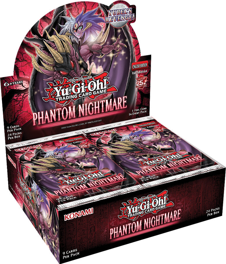 Don't close your eyes! Phantom Nightmare is lurking just around the corner! This 100-new-card set is loaded with astounding new cards that are the stuff your dreams are made of (and your opponent's nightmares!). Unlock the terrifying secrets of new themes, find brand-new cards for recent favorites, and meet more memorable monsters! No matter which way you turn, there's no escaping the exciting new cards in Phantom Nightmare!