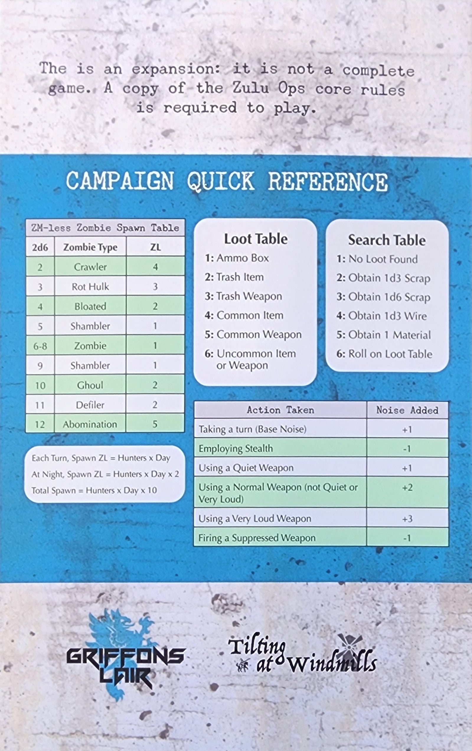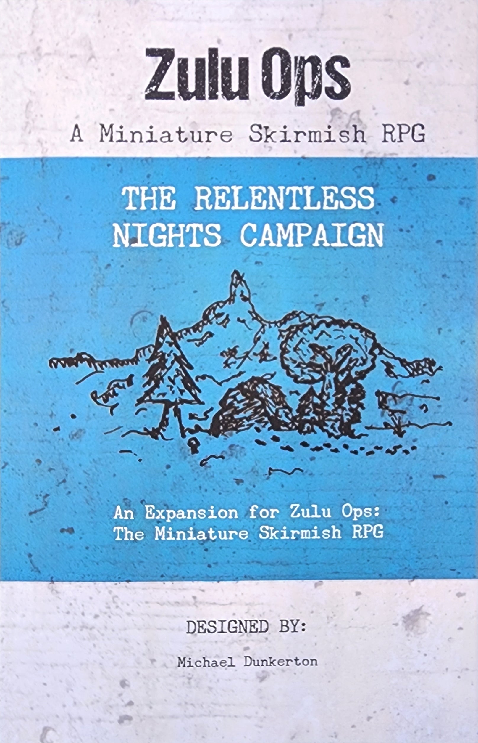 The much awaited expansion to Zulu Ops. Written by our own, Michael Dunkerton. This Expansion brings you new scenarios and ways to extend the current Zulu Ops into a long form Miniatures RPG experience! If you like Zulu Ops then you are going to love this
